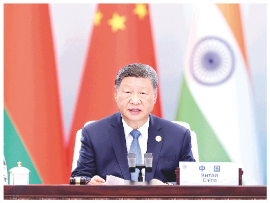 习近平强调,上海合作组织在成立宣言和组织宪章中开宗明义指出,要推动国际政治经济秩序朝着更加民主、公正、合理的方向发展。24年来,组织秉持互信、互利、平等、协商、尊重多样文明、谋求共同发展的“上海精神”,坚持地区事务共商、平台机制共建、合作成果共享,提出并实施许多全球治理新理念,日益成为全球治理体系建设和改革的积极推动力量。面对加速演进的世界百年未有之大变局,上海合作组织要发挥引领作用,为维护世界和平稳定贡献“上合力量”,为推动全球开放合作展现“上合担当”,为弘扬全人类共同价值作出“上合示范”,为捍卫国际公平正义采取“上合行动”,当好践行全球治理倡议的表率。