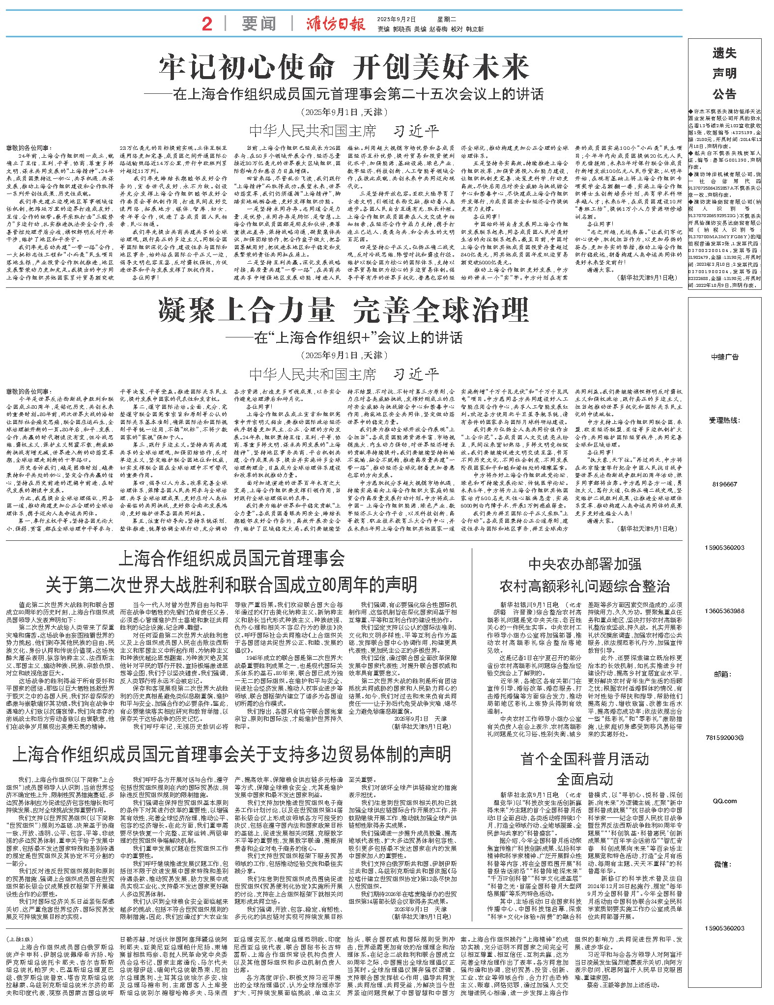 新华社天津9月1日电 (记者 王建华 杨依军)9月1日下午,“上海合作组织+”会议在天津梅江会展中心举行。国家主席习近平主持会议并发表题为《凝聚上合力量 完善全球治理》的重要讲话。
