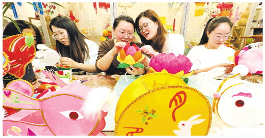 9月25日,城区十笏园非遗空间内,市民们正在学习扎制中秋节花灯。当日,“花灯邀明月、巧手迎中秋”主题活动在这里举行,大家围坐在一起,兴致勃勃地制作花灯。据了解,中秋节是我国三大灯节之一,赏灯亦是中秋佳节的重要文化习俗。中秋节看花灯不仅是视觉盛宴,更承载着“幸福团圆”的美好寓意,成为传递节日温情的重要载体。 记者 张驰 摄