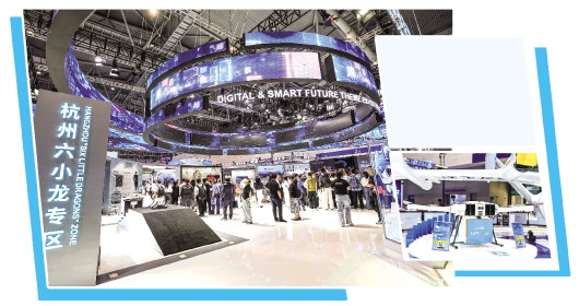 图①:在数贸会上拍摄的杭州六小龙专区。