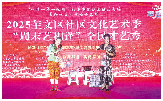 为喜迎国庆、中秋“双节”,9月26日晚,奎文区北苑街道沙窝社区举行了“邻里同欢迎‘双节’·携手共筑幸福家”文艺汇演。此次汇演节目内容丰富,形式多样,涵盖了女声独唱、萨克斯独奏、古典舞、哑剧小品等多种演绎形式,精彩纷呈的演出赢得了现场观众的阵阵掌声。汇演间隙还穿插了反诈与禁毒知识互动问答环节,有效提升了居民防范意识。记者 吴晓强 通讯员 高正亭 摄