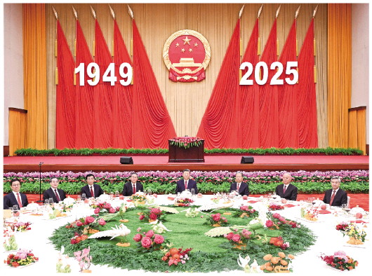 习近平指出,新中国76年来,党领导人民自力更生、接续奋斗,取得彪炳史册的辉煌成就。回望历史,中华民族从濒临危亡走向伟大复兴,一路筚路蓝缕、充满艰辛,也一路豪情满怀、凯歌高奏。前不久,我们隆重纪念中国人民抗日战争暨世界反法西斯战争胜利80周年,极大振奋了民族精神、激发了爱国热情、凝聚了奋斗力量。要继续用好历史经验,把国家建设得更好,让老一辈领导人和革命先烈开创的事业不断欣欣向荣。