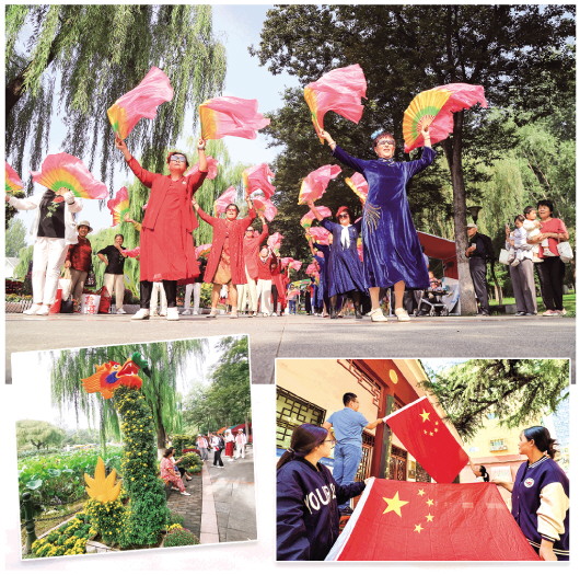 国庆、中秋“双节”来临之际,记者在城区采访时看到,无论是繁华的商业街区,还是公园景区,人们载歌载舞、游园赏景,到处一片欢乐祥和的节日气氛。