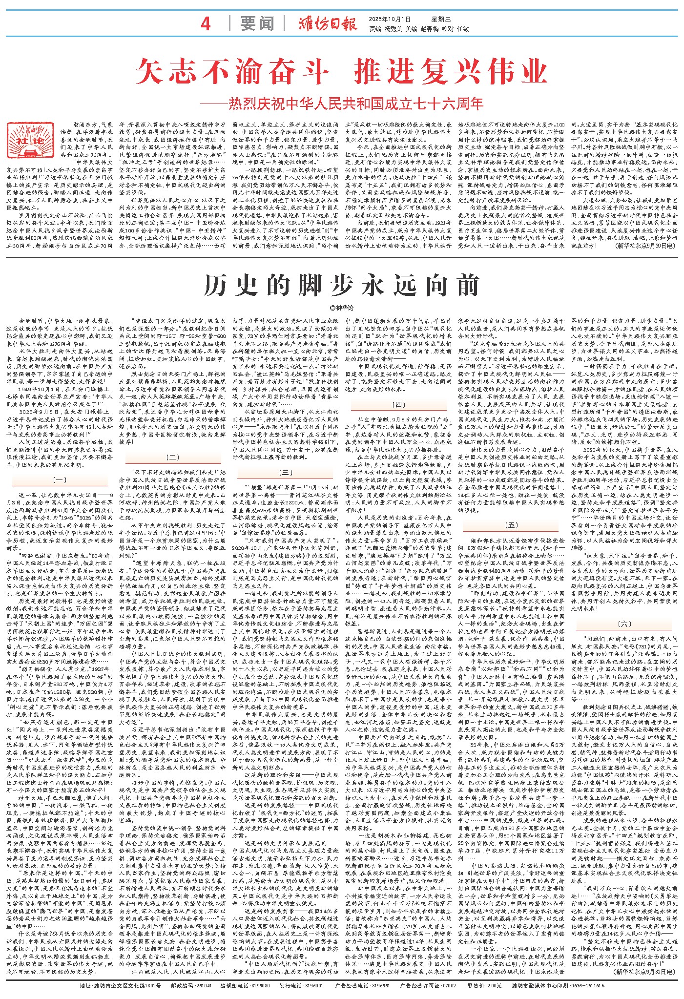胜利纪念日阅兵仪式上,战旗猎猎,铁流滚滚,受阅将士威武雄壮的行进,如同复兴路上中国人民不可阻挡的前进步伐。中国人民抗日战争暨世界反法西斯战争胜利80周年纪念活动,如同一本生动的爱国主义教材,激发出亿万人民的自信心、自豪感、精气神,鼓舞着新时代奋斗者用行动书写对祖国的热爱、对责任的担当。那是产业工人锻造大国重器的壮举,是广大农民为端稳“中国饭碗”而流淌的汗水,是科研人员奋力破解“卡脖子”难题的韧劲,是边防战士保卫国土的忠诚,是每一个劳动者在平凡岗位上的敬业奉献……在新时代中国一往无前的脚步里,奋斗是最强劲的脉动,创造是最美丽的风景。