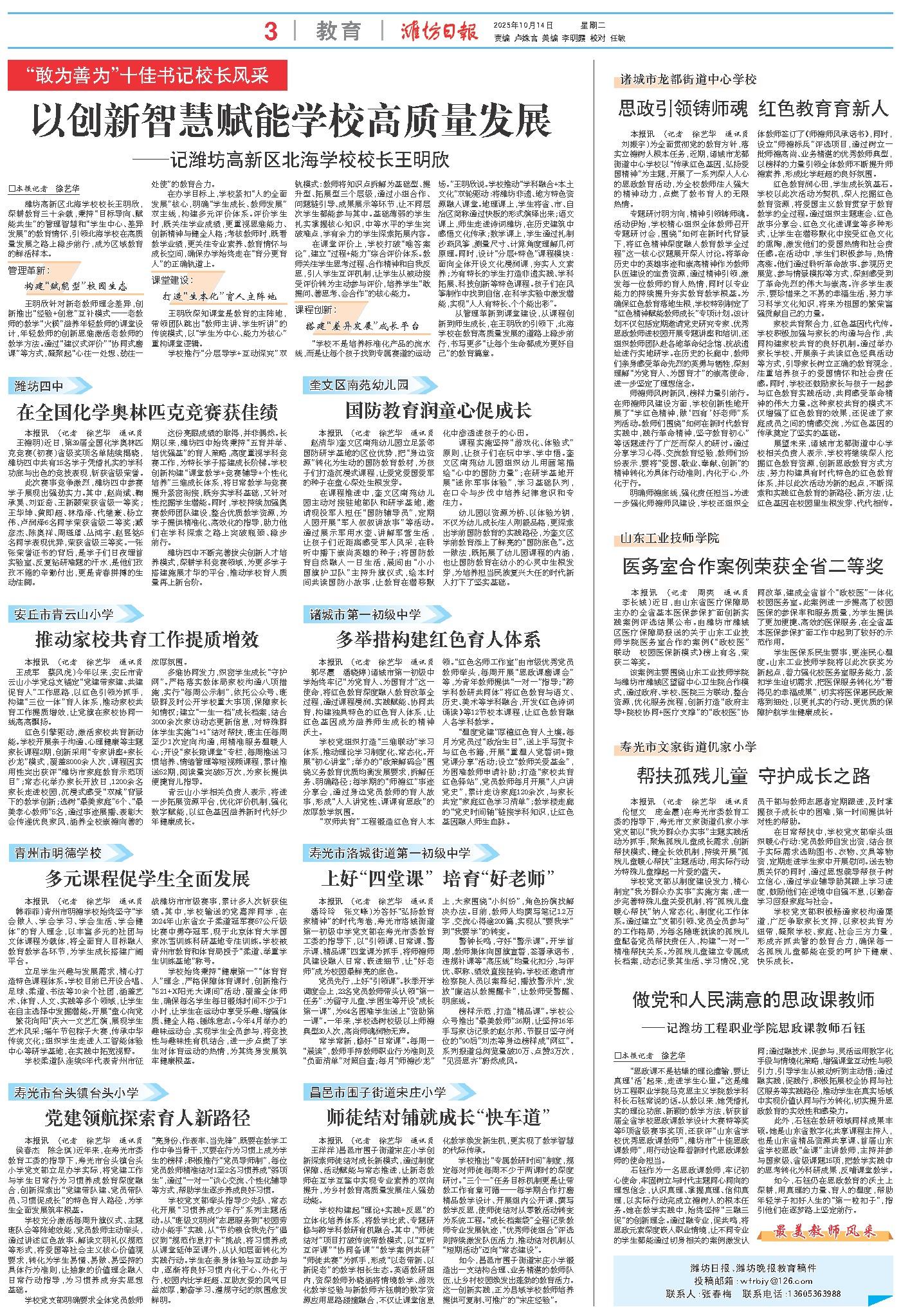 “思政课不是枯燥的理论灌输,要让真理‘活’起来,走进学生心里。”这是潍坊工程职业学院马克思主义学院教学科科长石钰常说的话。从教以来,她凭借扎实的理论功底、新颖的教学方法,斩获首届全省学校思政课教学设计大赛特等奖等5项省级赛事奖项,还获评“山东省学校优秀思政课教师”,潍坊市“十佳思政课教师”,用行动诠释着新时代思政课教师的使命担当。