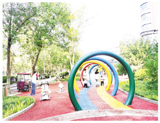 在奎文区玉清东街北侧虞河景区内,藏着一座名为童乐园的城市公园。该园占地面积约1500平方米,以彩色透水混凝土铺装划分为红、黄、蓝等不同区域,其内设置有秋千、平衡木、跷跷板、沙坑、卡通瓢虫等游乐设施,同时还融入“孔融让梨”“凿壁借光”“仓颉造字”等情景雕塑,吸引众多孩童前来玩耍。 记者 赵春晖 摄