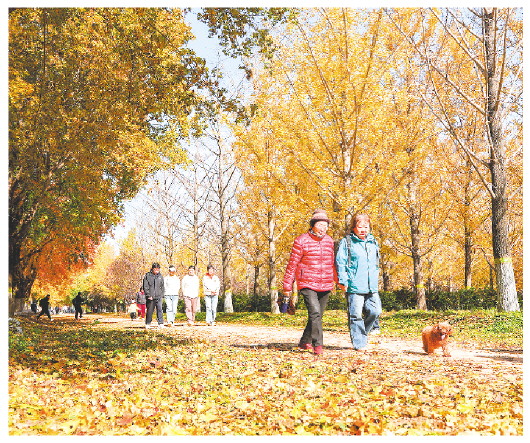 11月3日,潍城区于河街道的银杏生态园正式开园,并将持续开放至11月9日,每日9时至17时,市民可前往观赏。据了解,这片生态园拥有树龄逾七十载的银杏树3000余棵,是城区罕见的银杏群落。图为游人在银杏生态园拍照游览。