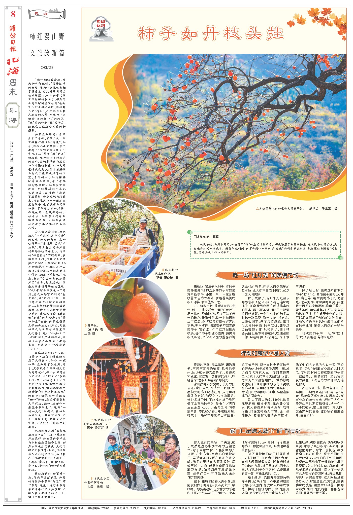 从山间野果到“国家地理标志产品”,从单一景观到产业集群,潍坊的柿子产业与乡村旅游的融合之路,彰显出的是生态优先、文化为魂的发展智慧。如今,这抹跃动在山水间的橙红,不仅装点了潍坊的秋天,更照亮了乡村从“卖风景”到“卖文化、卖产品、卖体验”的转型发展之路。