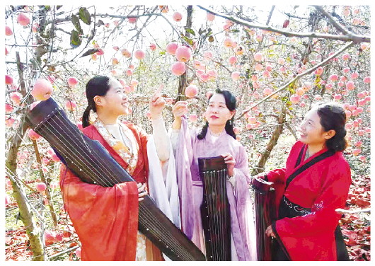 11月5日上午,诸城市桃林镇漩沟子村春秋家庭农场果园内,彤红苹果挂满枝头,诸城市文化馆古琴班师生齐聚于此,将传统雅乐与乡村生态之美相结合,让果香与琴韵碰撞出独特魅力,展现了山乡深秋的别样风情,成为当地文旅融合发展的生动缩影。 记者 李洪明 通讯员 别培海 摄
