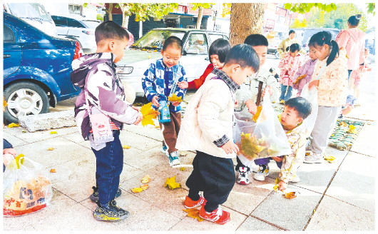 近日,潍坊学院幼教特教师范幼儿园开展了一场诗情画意的拾秋活动,老师们带领孩子们走出教室,走进大自然的怀抱。孩子们充满好奇,俯身拾取树叶,在亲身体验中直观感受季节的变化,乐享大自然的美好。