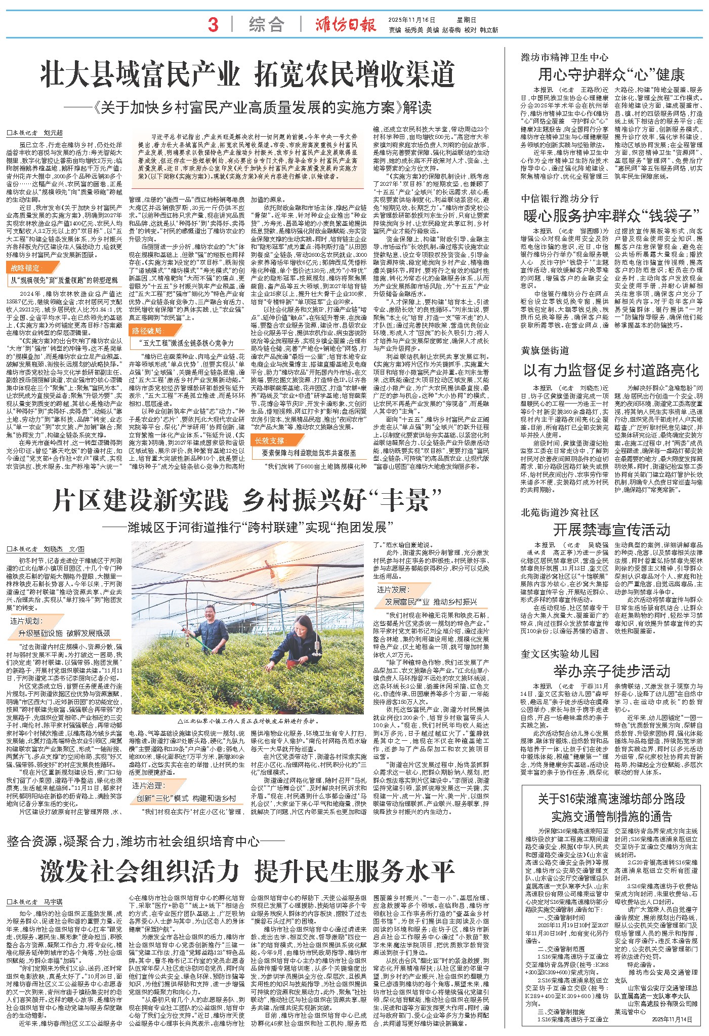 面向“十五五”,潍坊乡村富民产业正阔步走在从“单点强”到“全域兴”的跃升征程上。以制度化要素供给夯实基础、以紧密化利益联结凝聚合力、以全链条产业升级激活动能,潍坊既要实现“双目标”,更要打造“富民型、全链条、可持续”的高品质农业,让现代版“富春山居图”在潍坊大地愈发绚丽多彩。