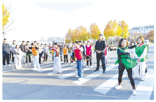 师生并肩“圈”住快乐
