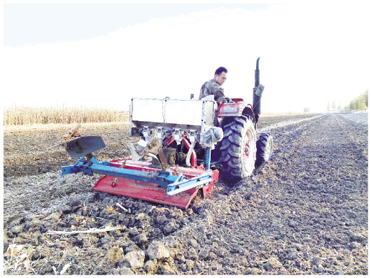 图为昌乐县营丘镇前唐店子村的农户正在进行机械化播种。记者 刘蒙亮 摄
