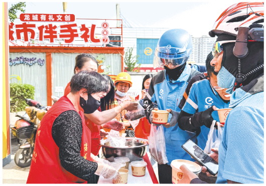 去年以来,聚焦不同场景需求,我市各级工会精准发力,打造多元暖心餐饮服务。奎文区总工会在“618”“双十一”等业务高峰期,联合华硕堂中药馆为快递员、邮递员送上定制帮扶;诸城市总工会携手马友库养生粥店,每周五在市中心广场驿站开展公益赠粥;高密市总工会丰富餐品品类,水饺、油条、柠檬水、新鲜水果等一应俱全;昌乐县总工会依托农商行餐厅资源,推出工作日免费早餐……截至目前,全市各级工会累计投入近100万元,让11万余人次新就业形态劳动者受益,热乎饭菜既填满了胃,更温暖了心。
