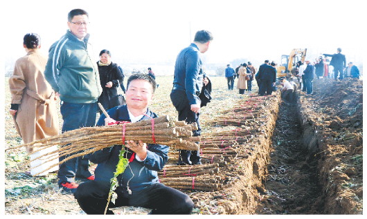 挖掘机在两行牛蒡中间挖出一道深1米多、宽80厘米的沟,四五个工人站在沟内,把深植地下的牛蒡一根根拔出,几名在沟沿上的工人将牛蒡快速切去叶柄,然后打捆、装车……11月22日,记者在位于安丘市经济开发区的山东圣川食品科技有限公司牛蒡种植基地看到,人们正在收获牛蒡。一些来基地参观的外地客商好奇地拿起沾着泥土的牛蒡拍照留影。