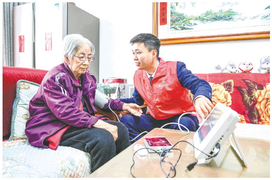 86岁的浙江绍兴柯桥区老人沈来水,不久前用上了社区配备的智能监护套装,居家就能享受24小时健康监测、远程问诊和紧急救助服务。