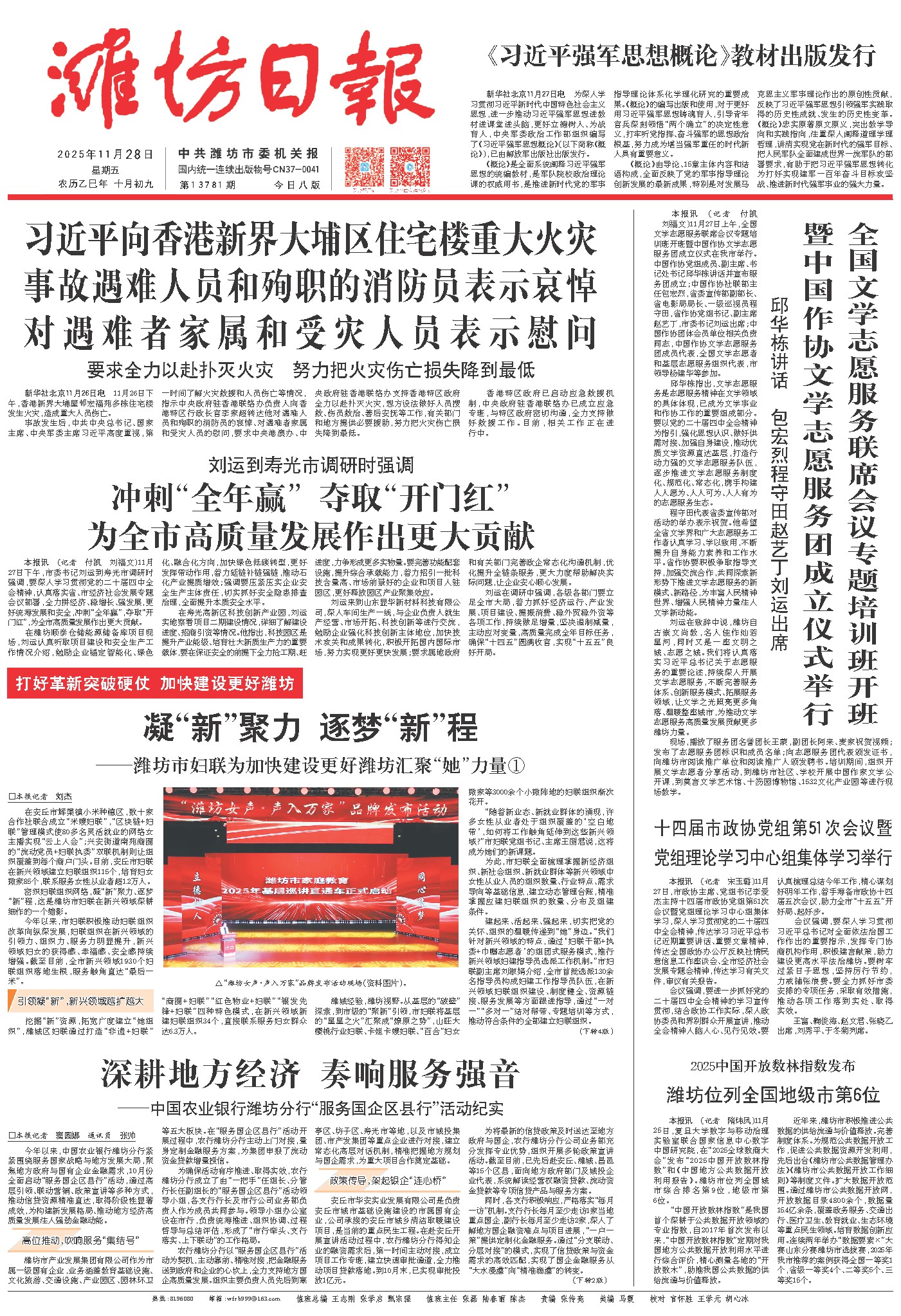 刘运在致辞中说,潍坊自古崇文尚教,名人佳作灿若星河,同时又是一座文明之城、志愿之城。我们将认真落实习近平总书记关于志愿服务的重要论述,持续深入开展文学志愿服务,不断完善服务体系、创新服务模式、拓展服务领域,让文学之光照亮更多角落、温暖整座城市,为推动文学志愿服务高质量发展贡献更多潍坊力量。