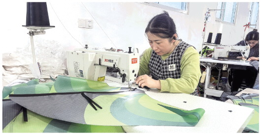 村里的风筝产业在不断发展的同时,最大程度带动了附近村民就业。“平时,我就在厂里负责风筝加工,工作场所离家近,每个月还有5000元的工资。”44岁的村民王翠萍在潍坊鸿鑫风筝有限公司主要负责风筝缝制工作,由于熟悉工序、操作熟练,她每个月都有稳定的收入。