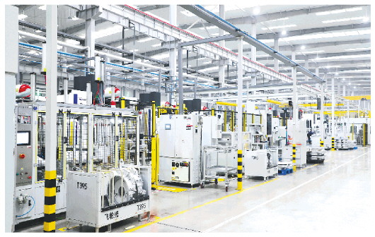 走进围子街道浩信昌盛智能工厂生产车间,一条500余米长的柴油发动机缸体缸盖生产线纵贯东西,气势恢宏。生产线上,工人师傅通过控制器操纵设备自动加工和冲洗,并进行在线实时质量检测。机器的轰鸣与工人忙碌的身影交织,共同绘就一幅紧张忙碌的生产画面。