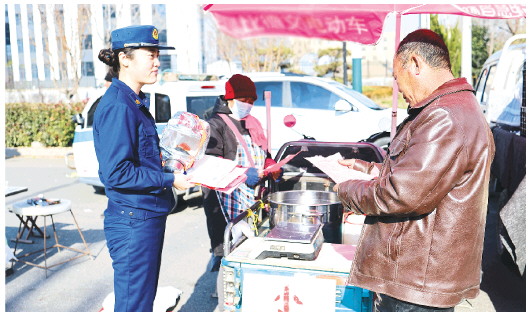 为做好冬季火灾防控工作、切实提升全民消防安全意识和自防自救能力,连日来,经济区开展了一系列有针对性的消防宣传培训活动。活动紧盯餐饮场所消防安全,组织宣传人员深入餐厅等,开展应急疏散演练,提升初期火灾扑救和人员疏散能力;延伸农村消防宣传触角,利用赶集日人员集中时机,向群众普及冬季用火用电安全、防范一氧化碳中毒等知识;加强养老服务机构和校园防护,走进养老院和学校组织开展专项培训与演练,筑牢安全防线。通过活动的深入开展,切实增强了社会公众的消防安全意识和应急处置技能,营造了全社会关注消防、参与消防的浓厚氛围。图为宣传人员向群众发传单普及防火知识。