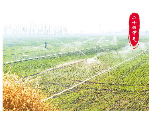 12月6日,在山东省聊城市茌平区温陈街道金谷家庭农场,农民使用智能喷灌设施浇灌小麦(无人机照片)。大雪节气临近,各地农民抢抓农时开展农业生产。 (新华社发)
