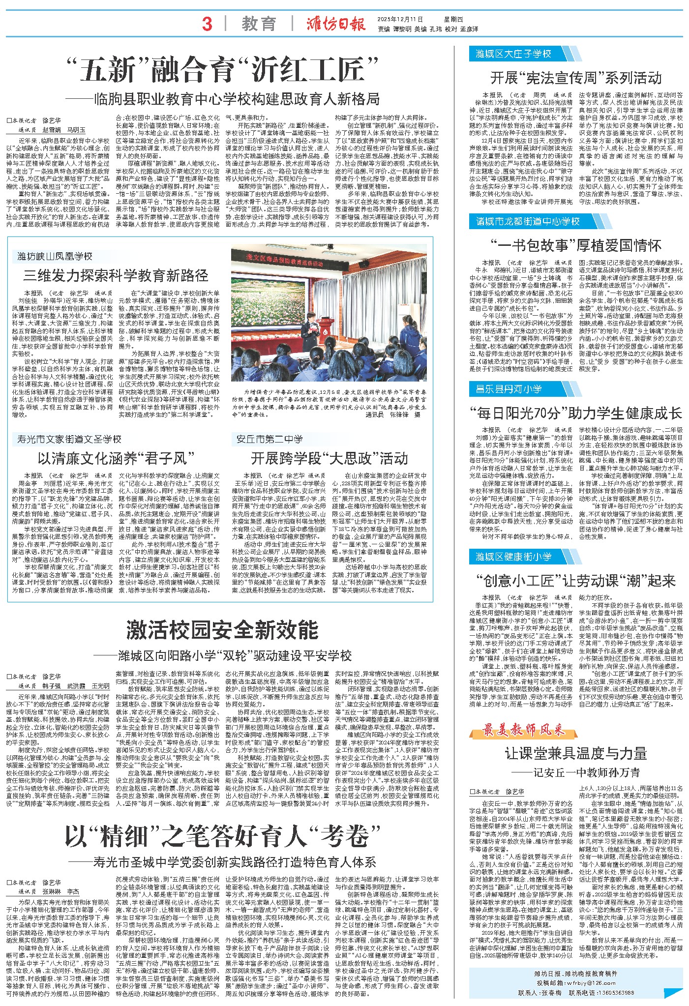 今年以来,该校以“一书包故事”为载体,将本土两大文化标识转化为爱国教育的“鲜活课本”,把身边的文化符号装进书包,让“爱国”有了摸得到、听得懂的乡土温度。校本选编的《臧克家童蒙诗选》页边,贴着师生走访故居时收集的叶脉书签;《诸城恐龙的“时空密码”》手绘手册,是孩子们探访博物馆后绘制的地质变迁图;实践笔记记录着老党员的奉献故事。语文课堂品读诗句写感悟,科学课复刻化石模型,美术课创作家国主题手抄报,综合实践课走进故居当“小小讲解员”。