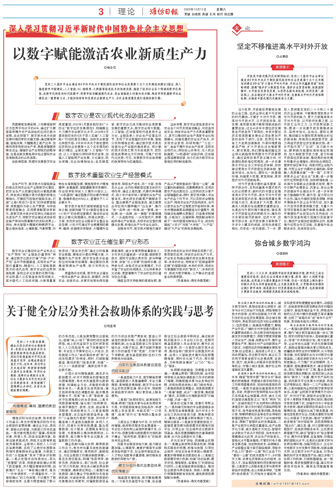 对外开放是中国的基本国策,坚持开放合作、互利共赢是中国式现代化的必然要求。新时代的中国正在推进高水平对外开放。高水平对外开放是促进深层次改革、推动高质量发展的强大动力,是促进扩大内需、更好满足人民美好生活需要的重要途径,也是应对外部环境不确定性、建设高水平开放型经济的积极作为。潍坊作为东部沿海开放城市、经济大市,改革开放以来,在开放发展方面取得了许多令人瞩目的成就,但和先进地区相比,仍存在一定的差距。下一步,要深入贯彻落实党的二十大和二十届历次全会精神,不断提高驾驭高水平对外开放的能力,更大力度推进高水平对外开放,以开放纾发展之困、以开放汇合作之力、以开放聚创新之势。要进一步完善开放发展推进体系,坚持市场化、法治化、国际化原则,推动建立与国际贸易相契合的经济新体制,持续深化制度型开放,奋力再造开放型经济发展新优势。进一步开拓外贸“广空间”,发力新兴市场。要积极对接国际高标准经贸规则,加大制度型开放力度,着力构建开放型经济新体制,推动质的有效提升和量的合理增长。用好综合保税区、国家农综区等平台,探索内贸企业拓外销、外贸企业扩内需的互通机制。深度融入高质量共建“一带一路”,引导支持更多企业“走出去”发展。进一步推动外经贸转型升级,加快跨境电商、公共海外仓等新业态新模式培育,提升中日韩产业博览会、风筝会、鲁台会等开放载体平台建设水平。进一步采取有力措施稳外贸、稳外资,着力深化对外合作。强化外商投资服务保障,持续开展服务外资企业专项行动,加大重大外资项目要素保障力度,为重大外资项目落地实施开辟绿色通道。组织开展国际产业投资合作系列活动,为境外投资者和地方招商引资搭建平台。推动产业链供应链国际合作,拓展境外经贸合作区功能,完善海外综合服务体系,促进投资合作。