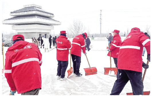 图②:青州阳光救援队在青州博物馆广场除雪。市应急管理局强化应急举措,加派值守人员筑牢24小时应急防线,组建4个专项工作组做好突发灾害事故应急准备。