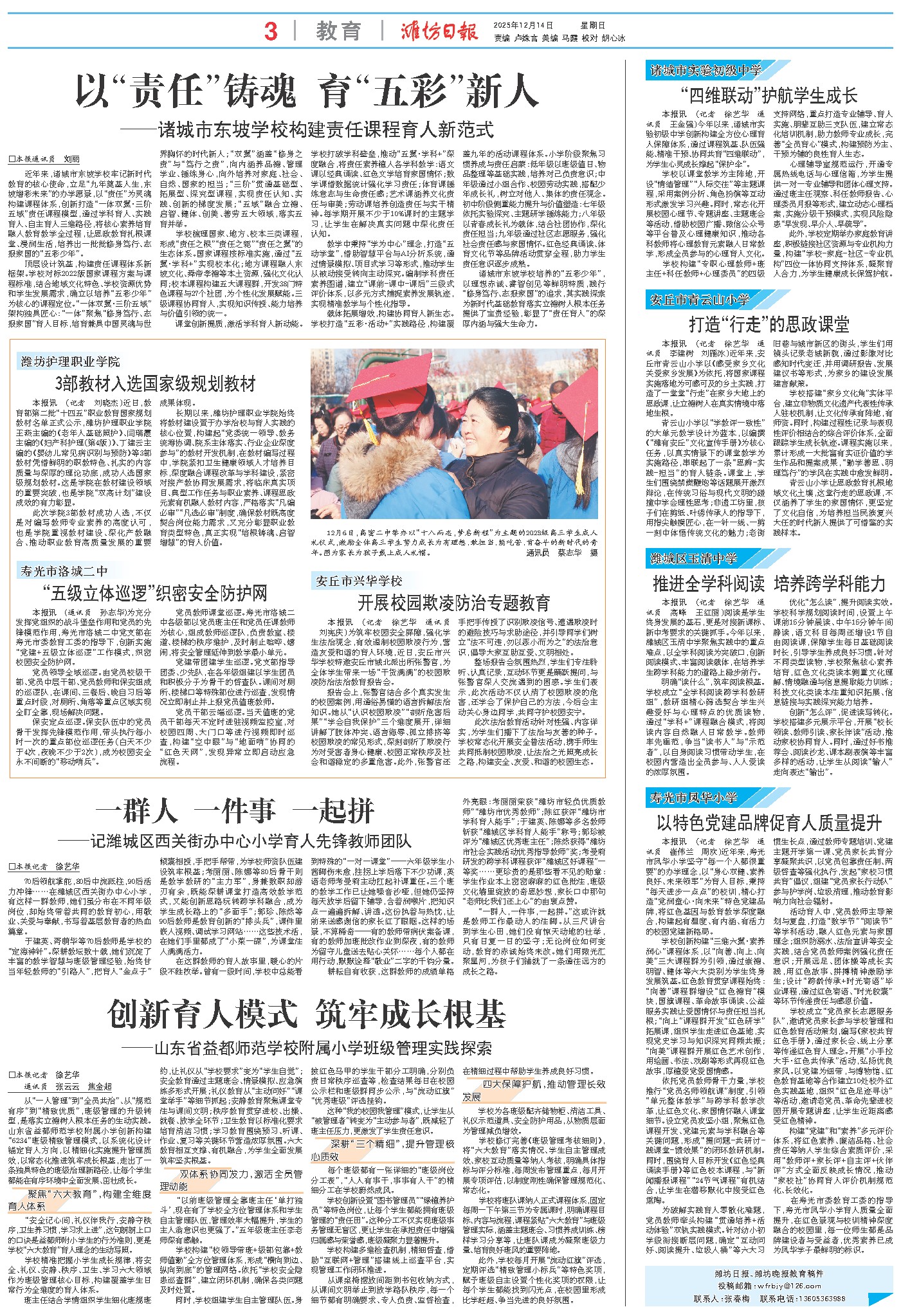 诸城市东坡学校培养的“五彩少年”,以理想赤诚、睿智创见等鲜明特质,践行“修身笃行、志报家国”的追求,其实践探索为新时代基础教育落实立德树人根本任务提供了宝贵经验,彰显了“责任育人”的深厚内涵与强大生命力。