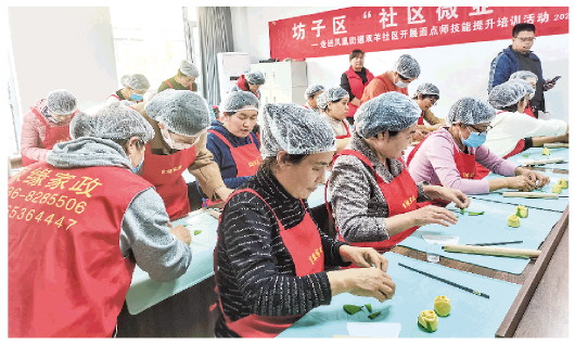 凤凰街道每年都摸排统计残疾人的就业意愿,定期组织小型供需见面会。辖区爱心企业也伸出援手,专门为残疾人开放操作工、后勤、保洁等岗位。同时,凤凰街道把风筝扎制、盲人按摩、电商直播等一系列免费技能培训送进社区,聚焦就业需求和个体兴趣,课程设置既灵活又实用。每期培训,街道都积极与企业对接,请企业到街道直接招聘,让参培人员实现“结业即上岗”。