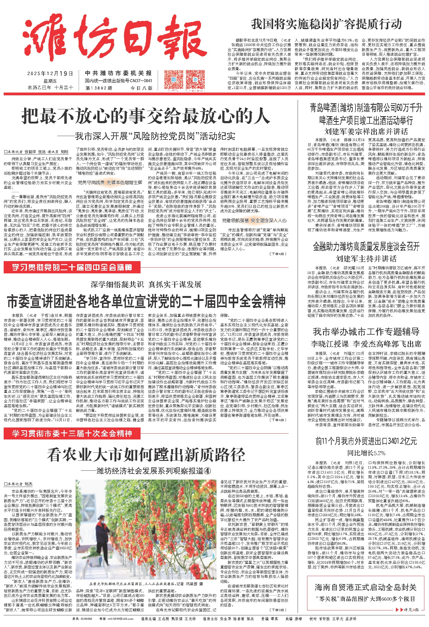 本报讯 (记者 邵光耀)12月18日,金融助力潍坊高质量发展座谈会在市级机关综合办公大楼召开。市委副书记、市长刘建军主持会议并讲话,市政府秘书长张志海参加。