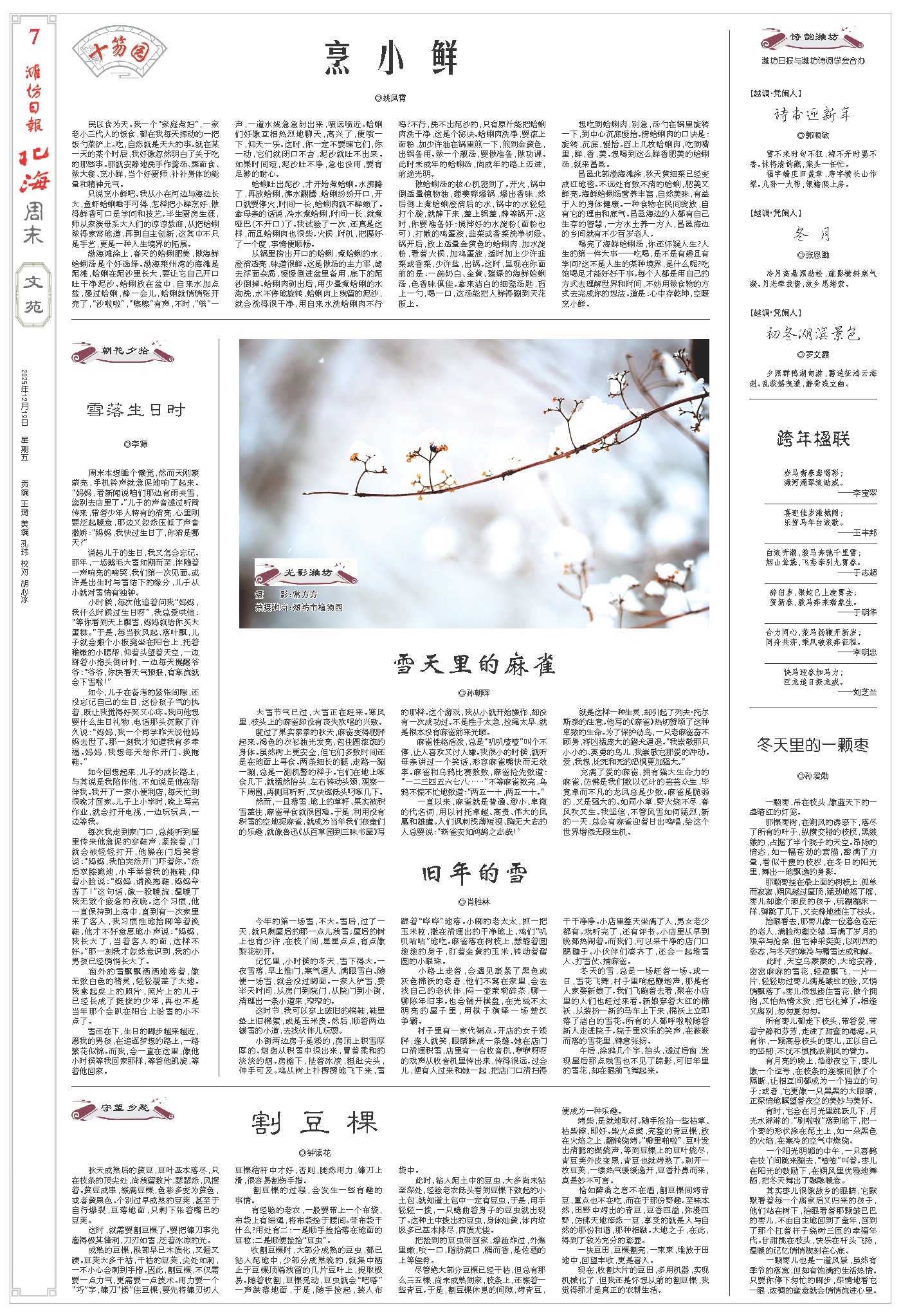 大雪节气已过,大雪正在赶来。寒风里,枝头上的麻雀却没有丧失欢唱的兴致。