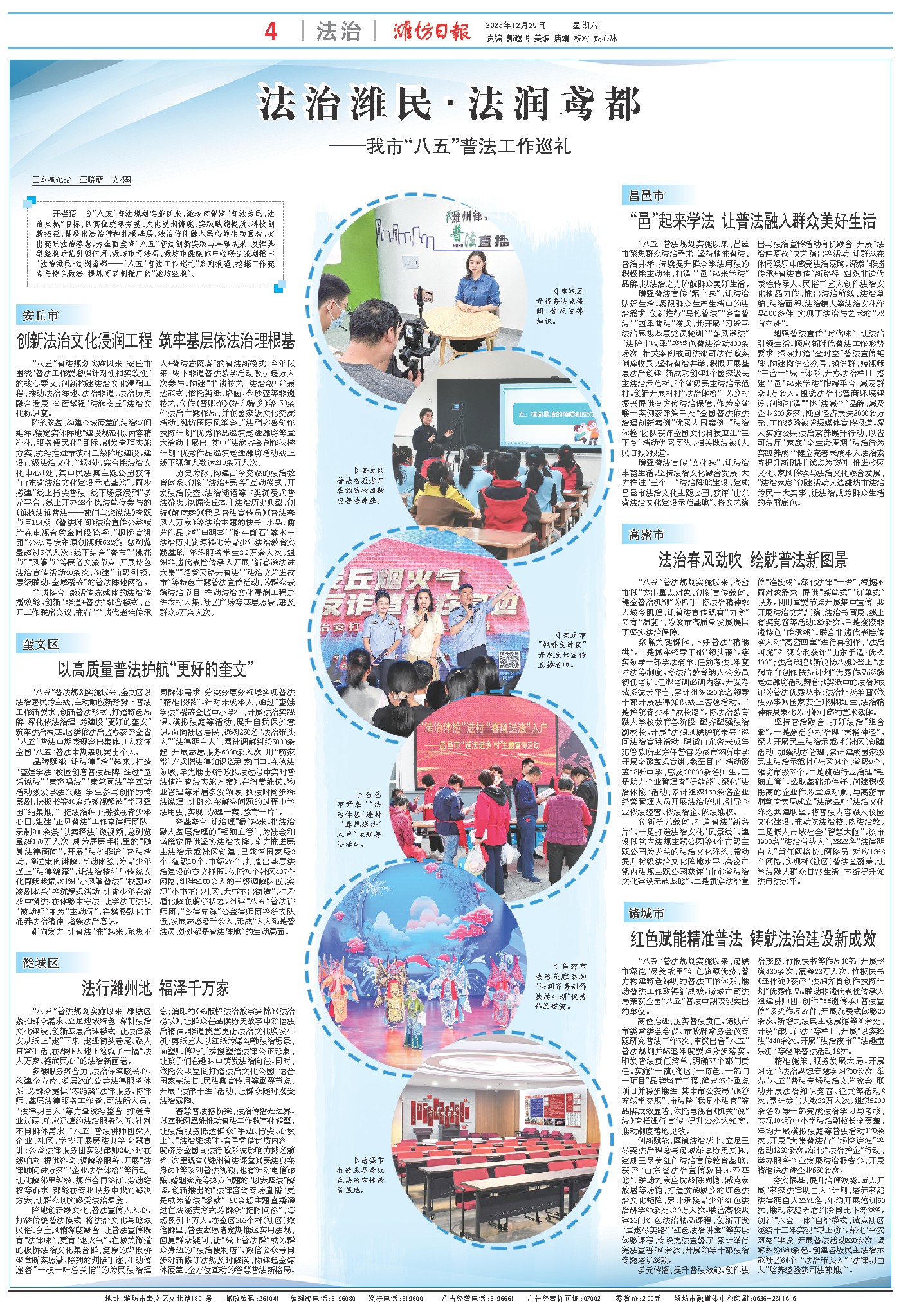 开栏语 自“八五”普法规划实施以来,潍坊市锚定“普法为民、法治兴城”目标,以高位统筹夯基、文化浸润铸魂、实践赋能提质、科技创新拓径,铺展出法治精神扎根基层、法治信仰融入民心的生动画卷,交出亮眼法治答卷。为全面盘点“八五”普法创新实践与丰硕成果,发挥典型经验示范引领作用,潍坊市司法局、潍坊市融媒体中心联合策划推出“法治潍民·法润鸢都——‘八五’普法工作巡礼”系列报道,挖掘工作亮点与特色做法,提炼可复制推广的“潍坊经验”。