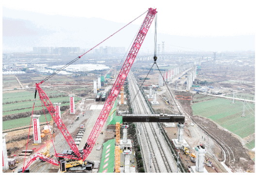 12月23日,由中铁十局承建的潍(坊)宿(迁)高铁临沂段站前8标上跨日(照)兰(考)高铁首榀钢横梁吊装成功,随后还将通过要点施工进行其他三榀钢横梁的吊装作业。潍宿高铁是国家“八纵八横”高速铁路网重要组成部分,是贯通鲁苏两省、衔接山东半岛与长三角地区的重要交通大动脉。