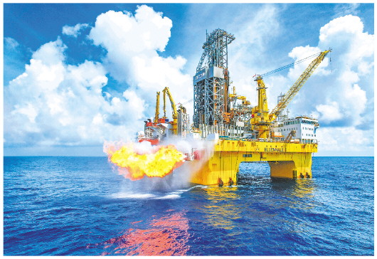 “深海一号”二期深水气井放喷测试瞬间(资料照片)。