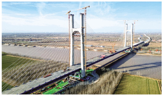 当日,津潍高铁东营黄河公铁大桥顺利合龙,为后续铺轨通车奠定基础。据了解,该桥是津潍高铁全线的重点控制性工程,全长2230.4米,由主桥、副桥和引桥三部分组成,下层为双线高速铁路,上层为双向六车道一级公路。津潍高铁是国家“八纵八横”高铁网中京沪通道和沿海通道的重要组成部分,也是京津冀协同发展、连接山东半岛和长三角地区的重要交通干线。 (新华社发)