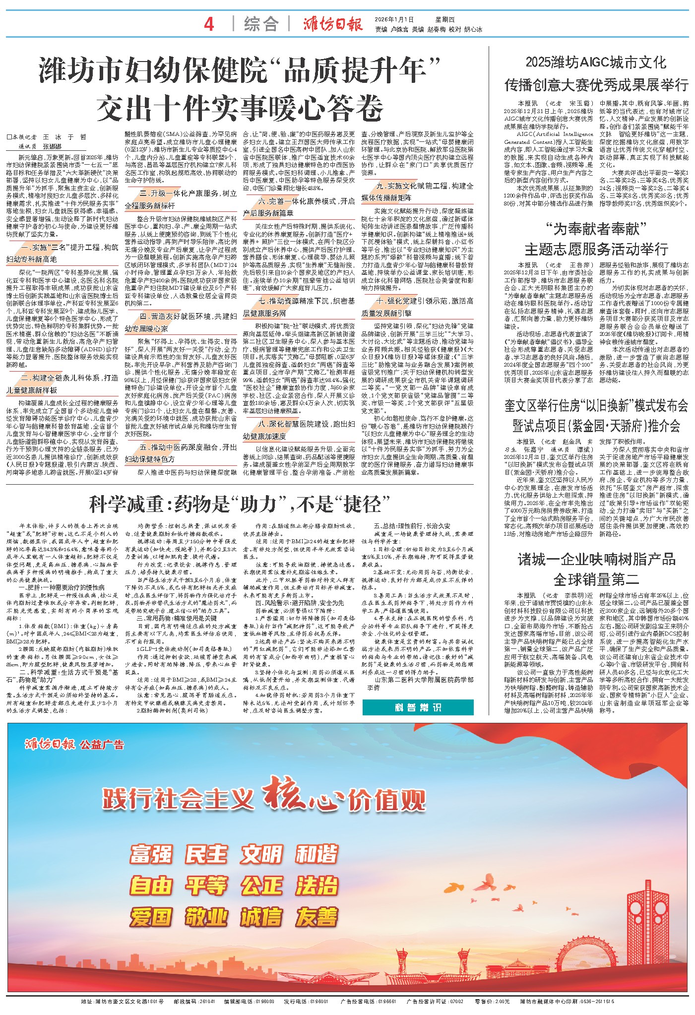 新元肇启,万象更新。回首2025年,潍坊市妇幼保健院紧紧围绕市委“一七五一”思路目标和任务举措及“六大革新硬仗”决策部署,坚持以妇女儿童健康为中心,以“品质提升年”为抓手,聚焦主责主业,创新服务模式,精准对接妇女儿童多层次、多样化健康需求,扎实推进“十件为民服务实事”落地生根,妇女儿童就医获得感、幸福感、安全感显著增强,生动诠释了新时代妇幼健康守护者的初心与使命,为建设更好潍坊贡献了坚实力量。