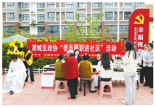 潍城区政协积极践行履职为民理念,深入访民情、听民意,了解群众“急难愁盼”,坚持问题导向,充分发挥政协委员专业优势,广泛开展“委员履职进社区”活动,以政协所能服务群众所需。2025年,潍城区政协围绕政策宣讲、法律援助、健康义诊、非遗传承、爱心义剪等开展“委员履职进社区”活动6次,服务群众1300人次,协调解决问题12个。