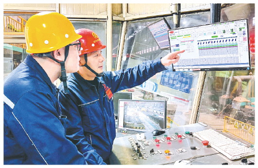 在主控室里,大屏幕呈现着相关数据,轧钢棒材车间主任李汉政站在监控设备前,专注地观察设备运行的各项变化。“以前的老师傅要手持长钳,在高温炙烤下将通红的钢材精准送入轧机。如今,这套工序已被智能系统替代。”李汉政向记者感慨道。在现代化的车间里,机械设备精准输送,传感器实时反馈,自动化轧机依指令完成加工……他见证了从人工作业到智能制造的时代变迁。