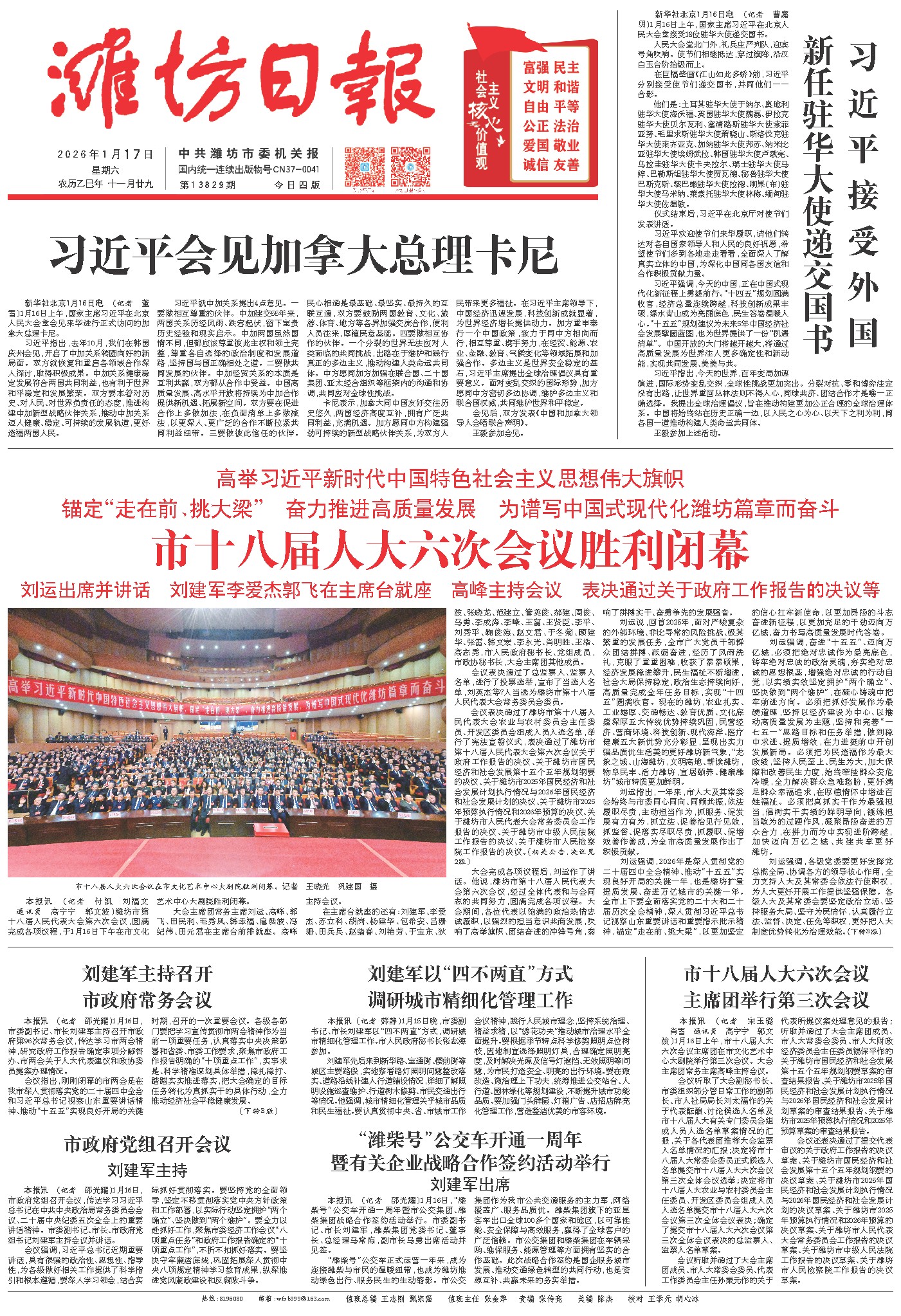 会议听取并通过了大会主席团成员、市人大常委会委员、代表工作委员会主任孙振元作的关于代表所提议案处理意见的报告;听取并通过了大会主席团成员、市人大常委会委员、市人大财政经济委员会主任委员锡保平作的关于潍坊市国民经济和社会发展第十五个五年规划纲要草案的审查结果报告、关于潍坊市2025年国民经济和社会发展计划执行情况与2026年国民经济和社会发展计划草案的审查结果报告、关于潍坊市2025年预算执行情况和2026年预算草案的审查结果报告。
