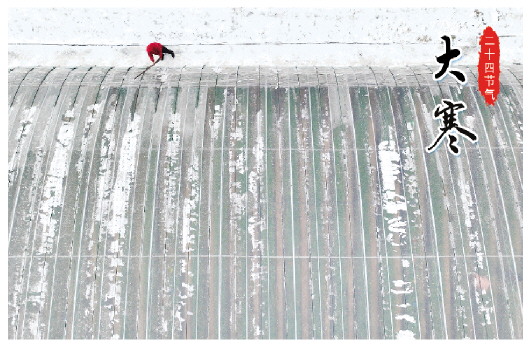 1月20日,迎来二十四节气中最后一个节气——大寒。民间谚语“小寒大寒,无风自寒”,道尽了其中深入肌骨的冷意。然而寒尽春生,古人通常将大寒视为冬春交替的重要转折点。图为1月19日,在山东省邹平市青阳镇化庄村,菜农在清理大棚上的积雪(无人机照片)。 (新华社发)