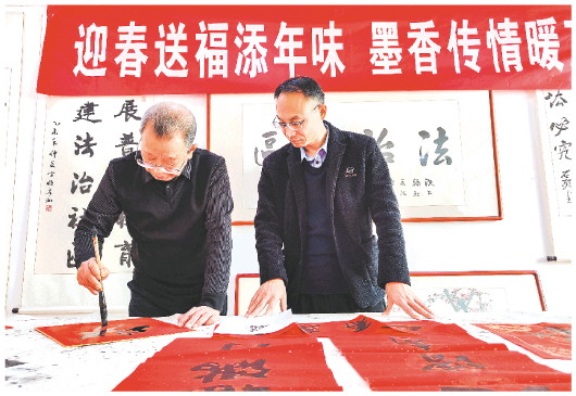 1月20日,在奎文区东关街道工福街社区,“迎春送福添年味 墨香传情暖万家”活动正在进行,居民现场挥毫写“福”字和春联,互赠祝福。通过活动,既弘扬了中华优秀传统文化,又拉近了邻里之间的距离。