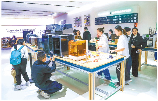 1月18日,顾客在深圳市南山区的INNO100全球创新旗舰店“万物定制工作站”了解产品。“万物定制工作站”拥有3D打印机等各类DIY设备,可以进行产品的个性化定制。