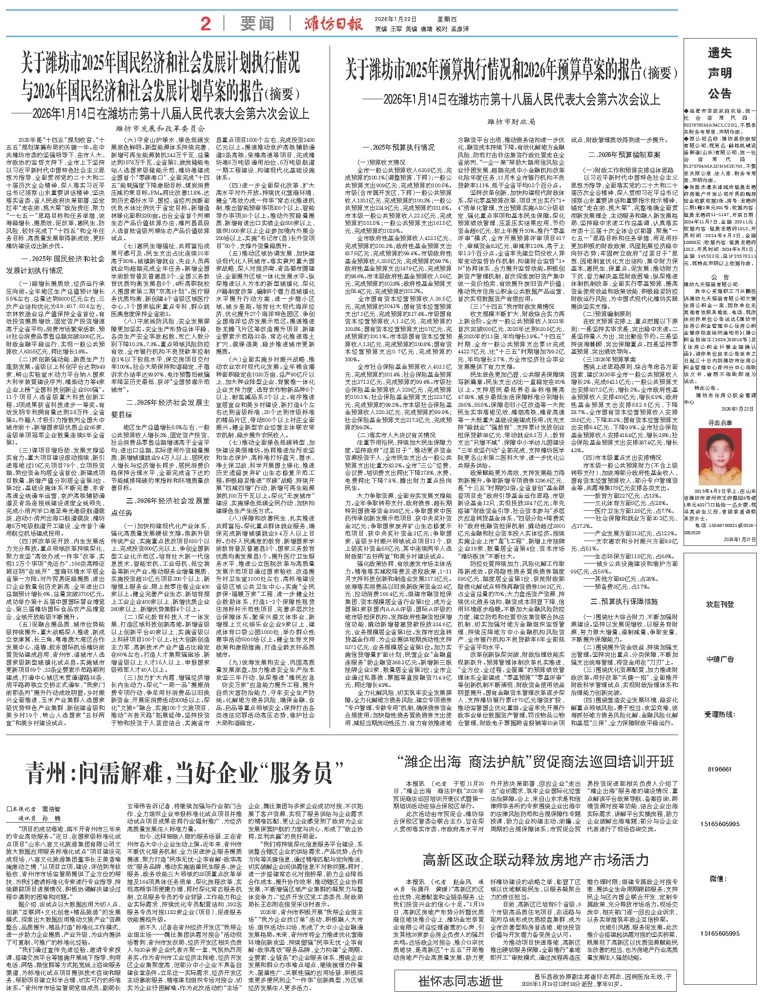 2025年是“十四五”规划收官、“十五五”规划谋篇布局的关键一年。在中共潍坊市委的坚强领导下,在市人大、市政协的监督支持下,全市上下坚持以习近平新时代中国特色社会主义思想为指导,全面贯彻党的二十大和二十届历次全会精神,深入落实习近平总书记视察山东重要讲话精神,坚决落实省委、省人民政府决策部署,坚定扛牢“走在前、挑大梁”政治责任,聚力“一七五一”思路目标和任务举措,统筹稳增长、提质效、促改革、惠民生、防风险,较好完成了“十四五”和全年任务目标,高质量发展取得新成效,更好潍坊建设迈出新步伐。