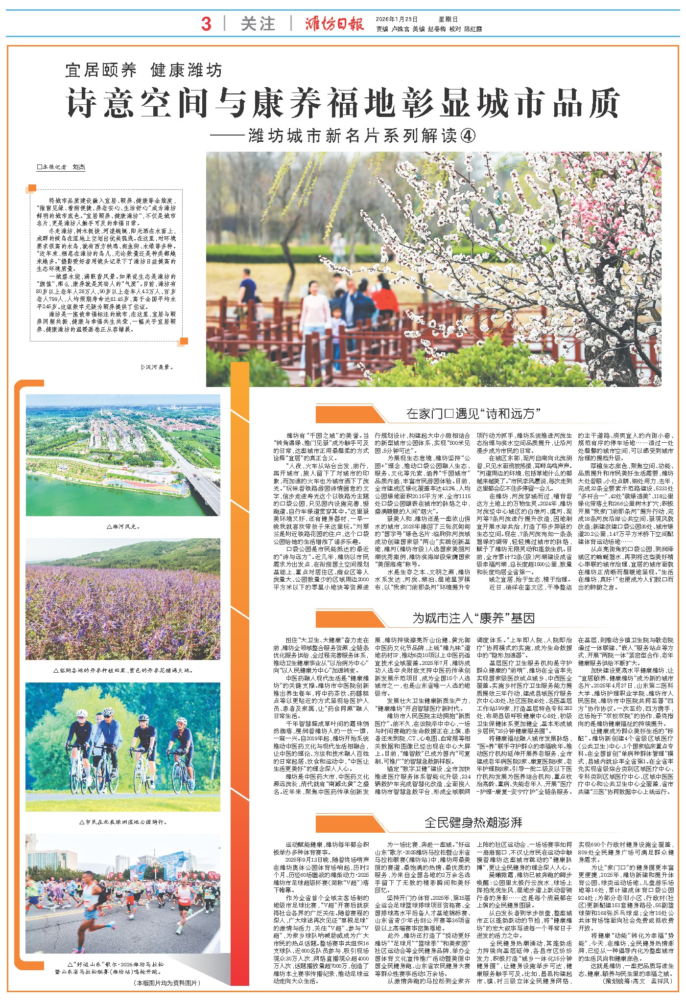 将城市品质建设融入宜居、颐养、健康等全维度,“推窗见绿、看病便捷、养老安心、生活舒心”成为潍坊鲜明的城市底色。“宜居颐养、健康潍坊”,不仅是城市名片,更是潍坊人触手可及的幸福日常。