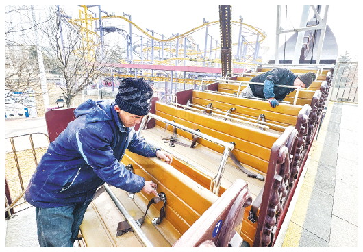 2月5日,在城区富华游乐园,工作人员正在对游乐设施进行检修。随着春节临近,我市城区各游乐场所组织人员全面检查相关游乐设施机器运行情况以及零部件、护栏、座椅等,排除安全隐患,为广大市民营造安心、放心、舒心的节日游玩环境。