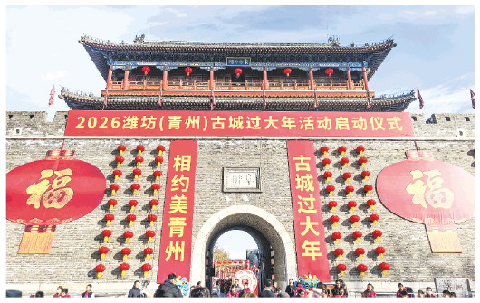 伴着阵阵锣鼓声和歌舞表演,2月10日,2026年青州古城过大年活动启动,标志着青州古城景区正式拉开春节旅游帷幕。