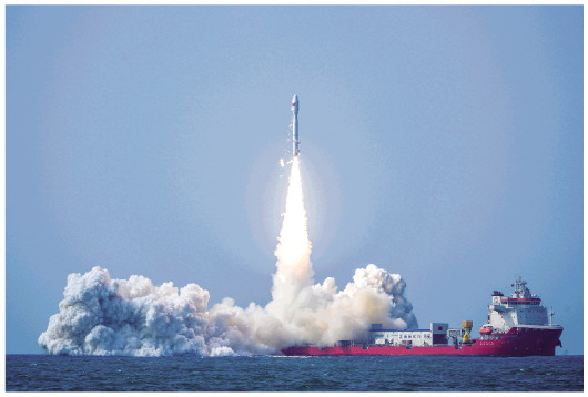 2月12日14时37分,我国太原卫星发射中心在广东阳江附近海域使用捷龙三号运载火箭,成功将巴基斯坦PRSC-EO2卫星、港中大一号卫星、电力红外卫星A星、数天宇星03-05星、空间环境监测卫星共7颗卫星发射升空,卫星顺利进入预定轨道,发射任务取得圆满成功。 (新华社发)