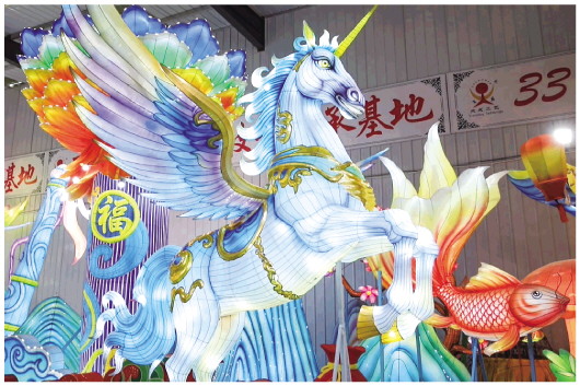 记者看到,各式花灯错落摆放、琳琅满目,色彩斑斓的灯身搭配精巧的造型,令人目不暇接。其中,马元素花灯成为今年的绝对热门,科技感十足的“未来马”、灵动喜庆的“生肖马”、一比一还原真马尺寸的“万马奔腾”组灯,每一款都独具匠心。尤其是爆款单品“天马行空”花灯,更是备受市场青睐。“马年新春,马元素的花灯订单格外多,目前已经售卖了上百组。”王永训向记者展示了该产品在各地实景演出的视频:身高6米的“天马”在夜空中昂首腾跃,彩色羽翅缓缓舒展,流星般的烟花在马蹄处次第绽放,绚烂的光影引得现场人群阵阵喝彩、掌声不断。