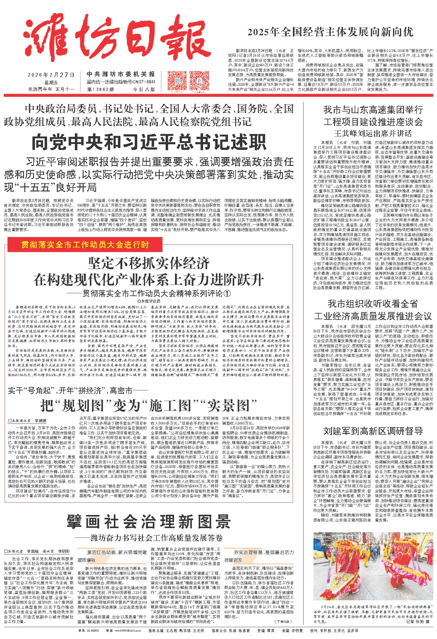 从“新春第一会”的凝心聚力,到热火朝天的生产一线,从项目建设的攻坚突破,到要素保障的精准发力,高密市正以担当实干的奋斗姿态,把“规划图”变为“施工图”“实景图”,奏响高质量发展的春之序曲,奋力冲刺首季“开门红”、力争全年“满堂红”。